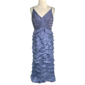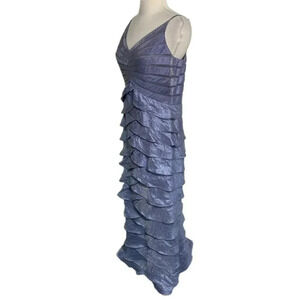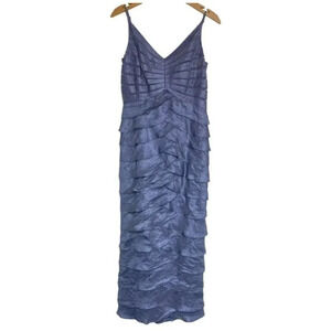 Adrianna Papell 10 elegant periwinkle ruffled tiered spaghetti strap gown