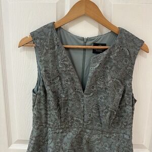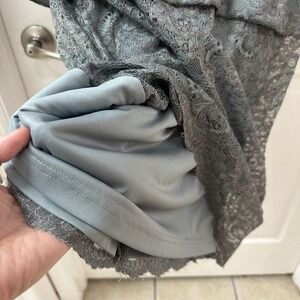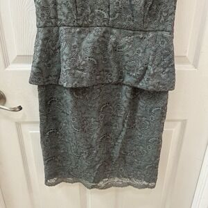 This Adrianna, Papell green lace formal dress is a size 10 and is in good preowned condition. Please see photos as they are part of the description and show the wear and condition of the dress.