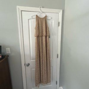 Create a high-impact look at your next formal event when you choose this beautiful, beaded evening dress. For that upcoming wedding or gala, this special occasion gown features a blouson bodice, sparkling scalloped beading, and a flowing straight skirt. The back features a zipper closure and keyhole detail. Pair this beautiful sleeveless evening dress with chandelier earrings and a sleek metallic clutch for a jaw-dropping look sure to turn heads all evening.