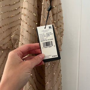 Adrianna Papell - ART DECO BEADED DRESS WITH HALTER NECKLINE IN CHAMPAGNE GOLD