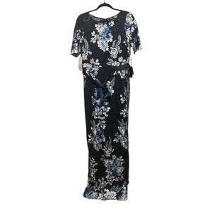 Adrianna Papell Angeline Dress Navy Lace Short Sleeve Long Gown Dress NWT Sz 10