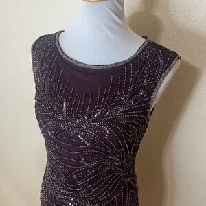 Adrianna Papell Art Deco Beaded Cocktail Dress Purple Silver Sequin Glam Women 4