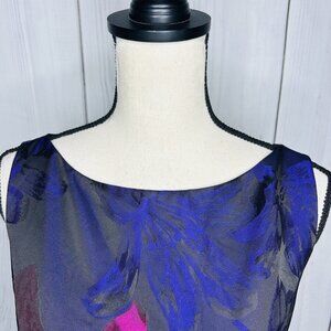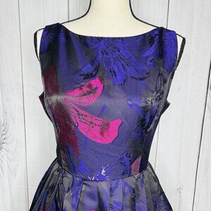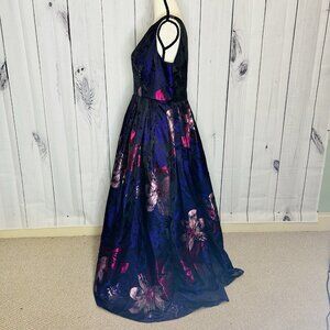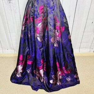 Adrianna Papell Ball Gown Sz 14 Pleated Maxi Dress Full Length Black Purple Pink