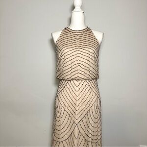 Adrianna Papell Beaded Art Deco Blouson Halter Dress