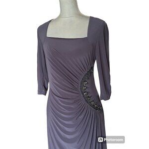Adrianna Papell Beaded Gown Ruched Waist Elbow Sleeve Formal Dress Size 8P