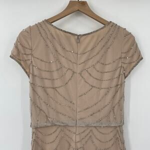 Adrianna Papell Beaded Mesh Blouson Gown Art Deco Cap Sleeve Light Nude Silver 2