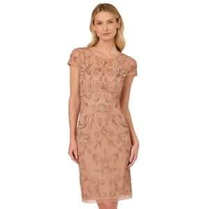 Adrianna Papell Beaded Mesh Sheath Dress – Rose Gold | NWT | Size 6