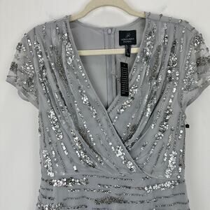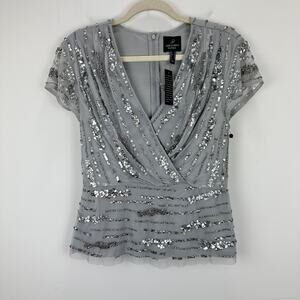 Adrianna Papell Beaded Sequin Top Silver Party Glam Festive Holiday US 2 NWT.