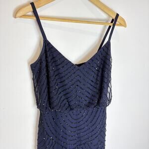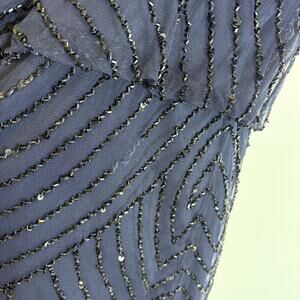 Adrianna Papell - Beaded Sequined Navy Cocktail Dress