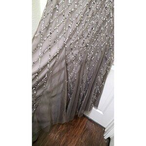 Adrianna Papell Beaded Short Sleeve Gown Size 12 Gray Elegant Formal Dress