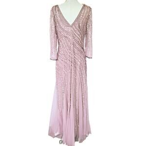 Adrianna Papell Long Beaded Dress, Dusted Petal, Size 14