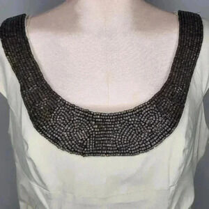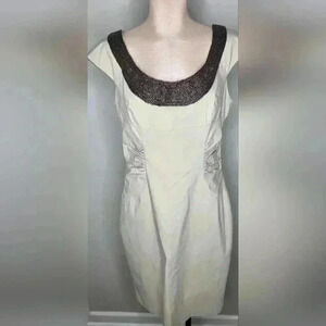 Adrianna Papell Beige Fitted Stretch Dress Beaded Neckline Appliqué Size 14