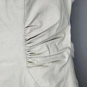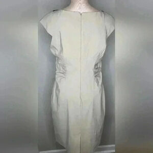 Adrianna Papell Beige Fitted Stretch Dress Beaded Neckline Appliqué Size 14. Good used condition, see photos for details.