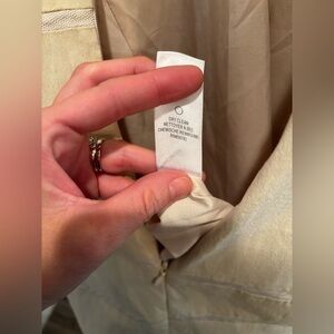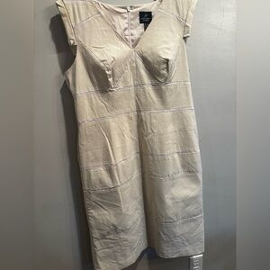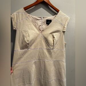 Adrianna Papell Beige Midi Dress with Subtle Stripes business casual cap sleeve