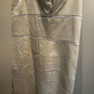 Elegant beige midi dress featuring delicate stripe accents. Sleeveless and versatile for any occasion.