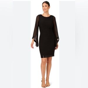 This bold Adrianna Papell bell sleeve striped dress has all the right details: chic mesh sleeves, delicate sequin trims and a flattering silhouette. Pair it with a quilted bag for a touch of classically understated elegance.