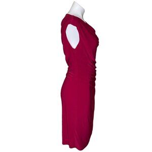 Adrianna Papell Berry Sheath Dress Dramatic Asymmetrical Sleeve Cowl Neck Size 6