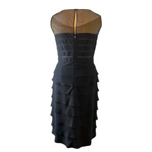 Adrianna Papell Black 10 Cocktail Dress 10 Tiered Ruffle Sheer Neckline