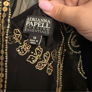Adrianna Papell Black And Gold Embroidered Beaded Formal Evening Dress size 14