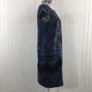 Adrianna Papell Black Blue Batik Print Crepe Shift Dress Womens 6 Cap Sleeve