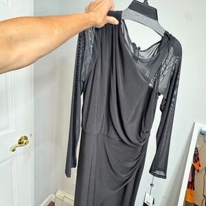 Adrianna Papell Black Draped Mesh Sleeve Jumpsuit Evening Dress Pant Size 12 New