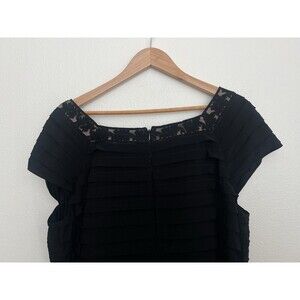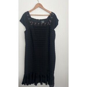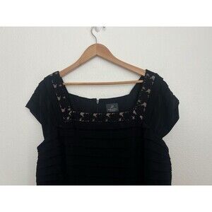 Adrianna Papell Black Dress Cap Sleeve Square Neck Flow Lace Party Stretch 18W