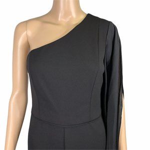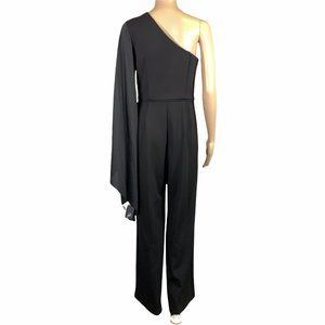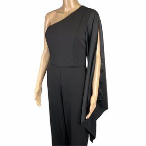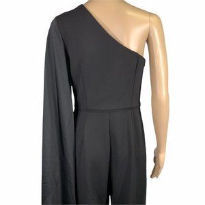 Adrianna Papell Black Formal One Shoulder Drape Sleeve Jumpsuit
