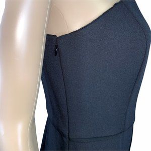 Black formal jumpsuit, one shoulder or asymmetrical, wide leg pants