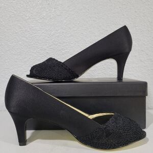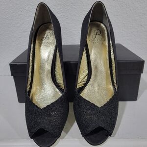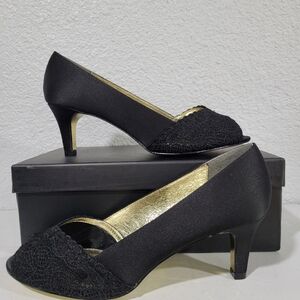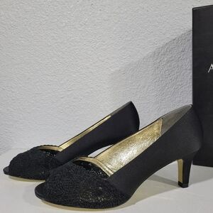 Adrianna Papell Black Heels with Gold Accents