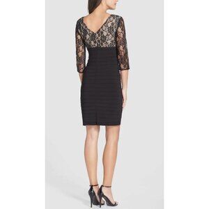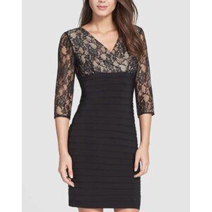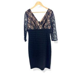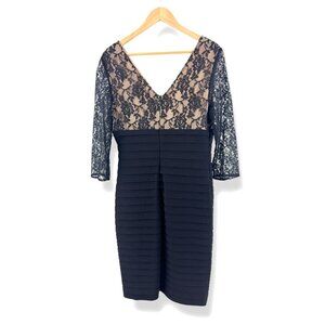 Adrianna Papell Black Lace/ Shutter Pleat Dress Size 12 Evening Wedding Cocktail