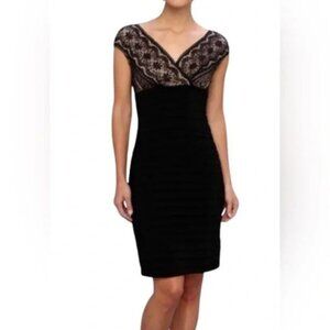 Adrianna Papell Black Lace & Shutter Pleat Dress Size 4