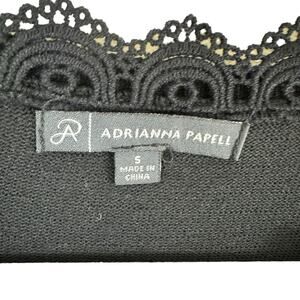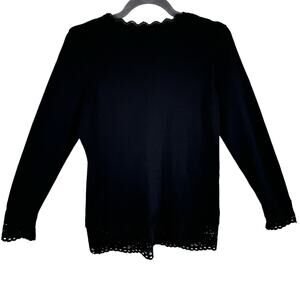 Adrianna Papell Black Long Sleeve Lace Trim Lightweight Tight Knit Sweater Sz S