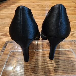 Adrianna Papell Satin and Black Mesh Open Toe Jamie Heels Women's Size 7.5M
