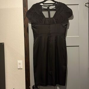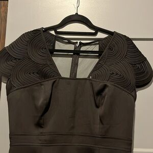 Chic black midi dress with elegant detailing. Perfect for formal events.