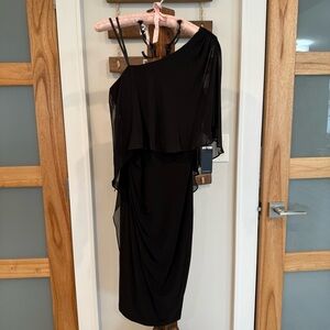 Adrianna Papell Black One Shoulder Draped Side Asymmetrical Neck Prom Dress 4
