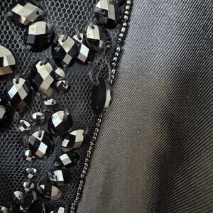 Adrianna Papell Black Satin Beaded Mesh V-Neck Evening Gown Size 4P