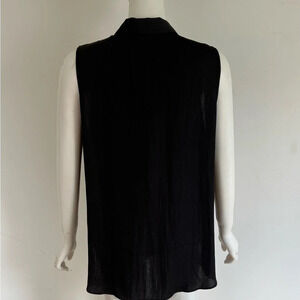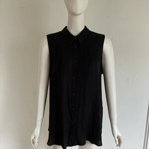Adrianna Papell Black Satin Buttoned Collared Sleeveless Shirt Tank Blouse Sz L