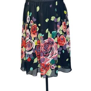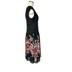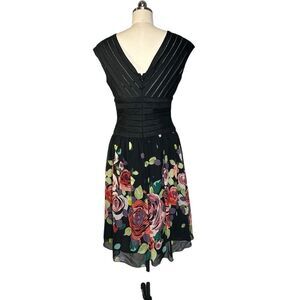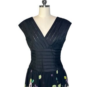 Adrianna Papell Black Silk Ribbon Floral Fit and Flare Cocktail Midi Dress | 10