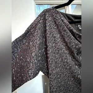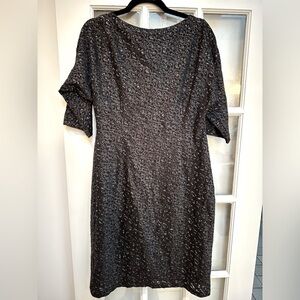 Adrianna Papell Black Silver Metallic Leopard Print 3/4 Sleeve Dress Size 14 L