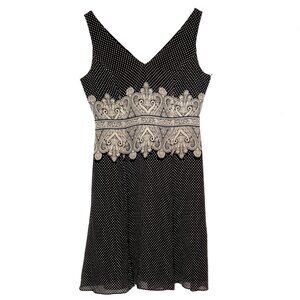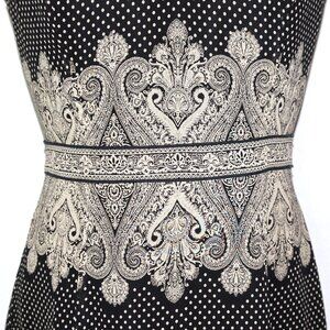 Adrianna Papell Black Tan Silk Polka Dot Paisley Sleeveless Midi A-Line Dress 8P