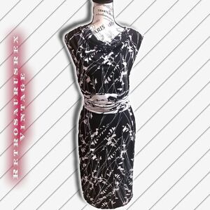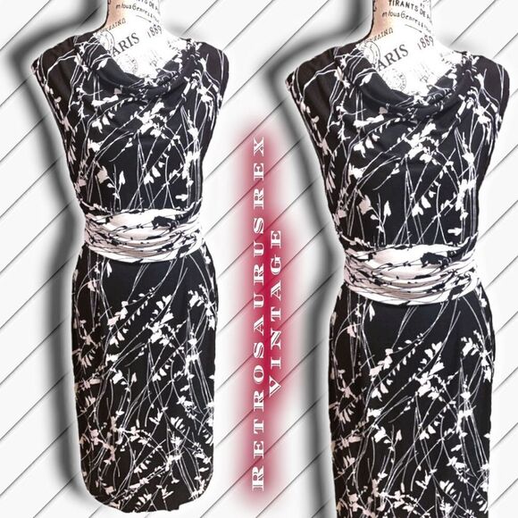 Adrianna Papell Black & White Abstract Floral Sleeveless Stretch Dress, Size 8