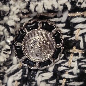 Nicely detailed silver tone and black buttons down front and 3 on each wrist
