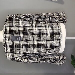 Adrianna Papell Black White Crewneck Plaid Blazer with Metallic Threading Size M
