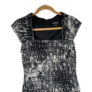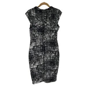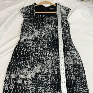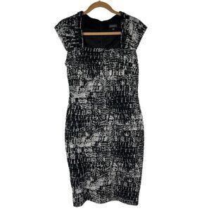 Adrianna Papell Black White Square Neck Tier Pleated Slimming Sheath Dress