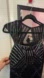 Elegant black dress with intricate silver detailing. Features a stylish geometric pattern. Perfect for formal occasions.