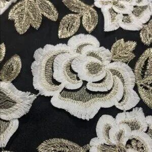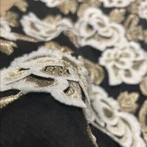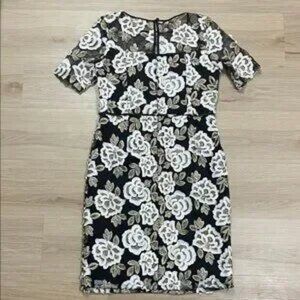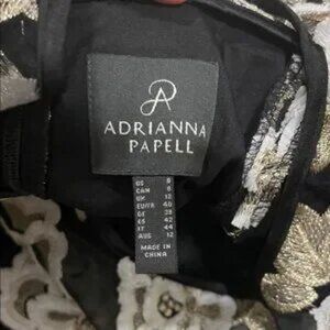 Adrianna Papell Black and White Floral Midi Dress with Gold Details