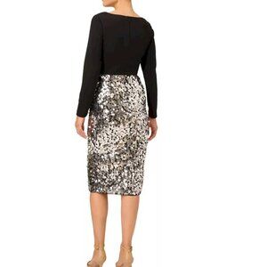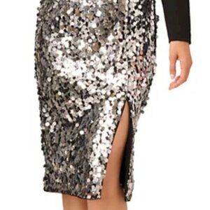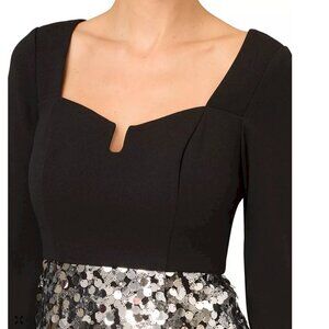 Adrianna Papell Black Top with Silver Sequin Skirt Midi Dress Size 2 New with Tags NWT Reg. Retail $199.00