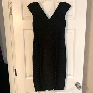 Adrianna Papell Black Overlapping Curved Pleated Dress Size 8