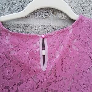 Adrianna Papell Blouse Pink Sz M Lace Cap Sleeve Keyhole Scoop Neck Career