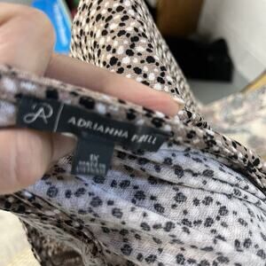 Adrianna Papell Blouse Top Plus size 1X Brown Black Dots Stretch Career Modest